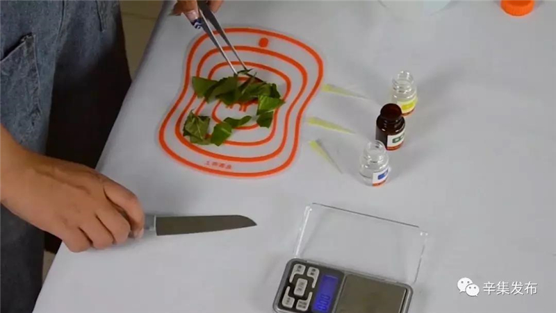 检测历程也十分轻盈:只要称取2.0g样品(约1cm见方)放入样品杯中,,,加入显色剂,,,静置10分钟后即可视察到效果。。。。